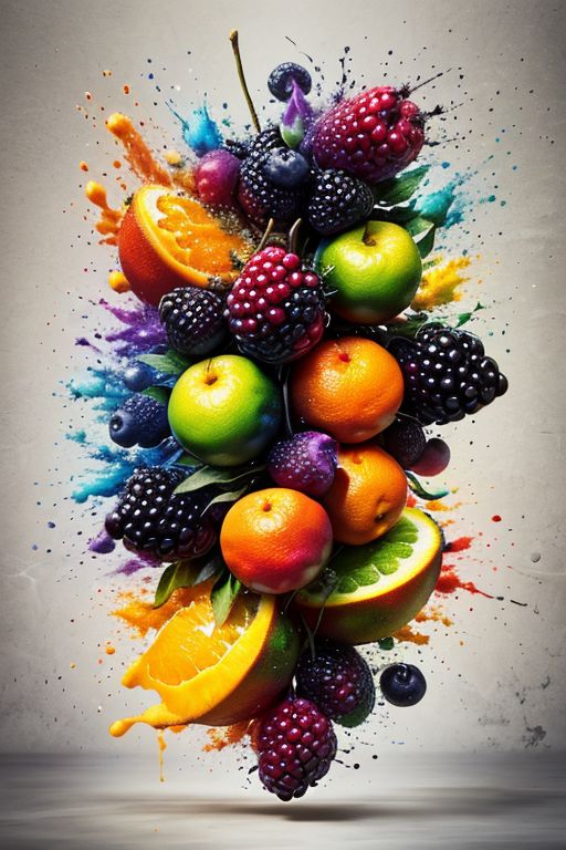 mangosteen, blackberries, oranges, neon, (vivid colors:1.5), arco iris, shatter, scatter, ral-dissolve fruit , (wind:0.7), (swirl:0.6), (Masterpiece:1.3) (best quality:1.2) (high quality:1.1)