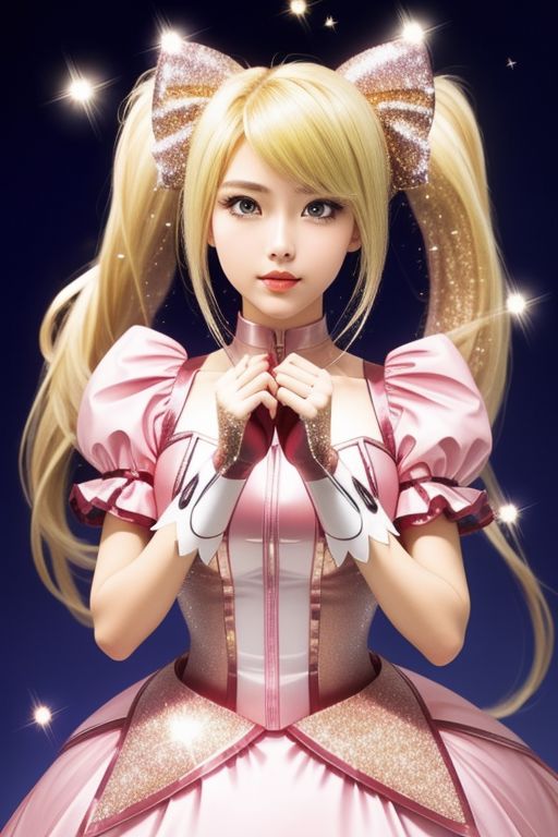 (samus aran) dressed in (puffy pink latex kanamemadokaoutfit), (blonde girly twintails), magical girl, masterpiece, best quality, (perfect face, beautiful face, symmetric face), (sparkles, sparkling hair, sparkling clothes, sparkles around face:1.3)