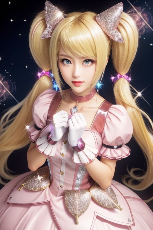 (samus aran) dressed in (puffy pink latex kanamemadokaoutfit), (blonde girly twintails), magical girl, masterpiece, best quality, (perfect face, beautiful face, symmetric face), (sparkles, sparkling hair, sparkling clothes, sparkles around face:1.3)