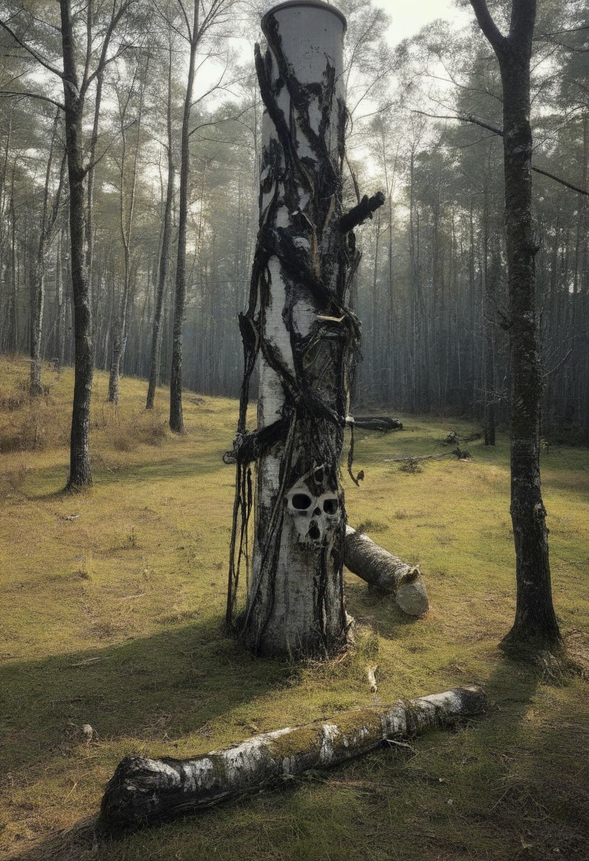 Caspar David Friedrich (romanticism), Pine barrens with charred tree skeletons, birch bark peeling scrolls, napoleonic-era signal tower,corncrake in tall grass.,Art painting by Makoto Shinkai and Fiona Staples and Tran Nguyen, featured on Caravaggio,, artstation trending, macro lens, volumetric light, <lora:Illustration_Insanity:0.3>, <lora:dreamshaperXL10_lora:0.7>, <lora:extremely_detailed:0.3> extremely detailed, <lora:DetailMaximizer:0.3>,, Surrealism art style, dreamlike and irrational imagery, explores the unconscious mind, juxtaposition of unlikely elements, challenges reality and logic