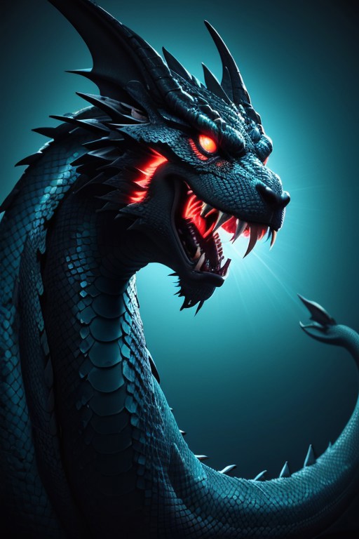 Asian dragon blue snake gradient vibrant neon colour, rough, textural, broad brush strokes, red color prominent detailed, alienzkin, silhouette, spotlight, dark theme, c4d, blender, raytracing, unreal engine 5, render 3d, face close up,