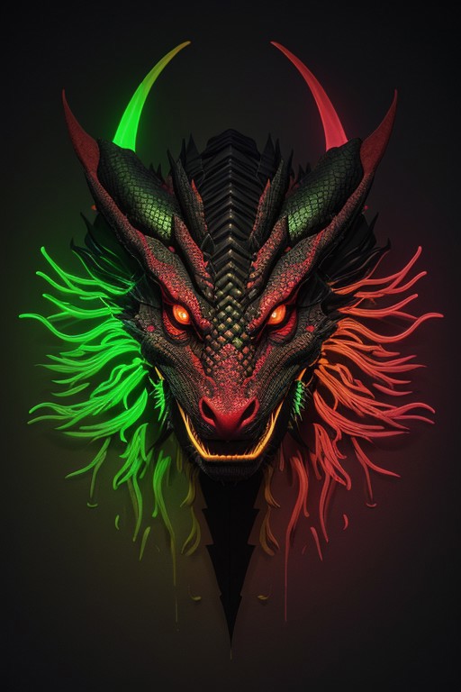 Asian dragon , green, red, gold snake gradient vibrant neon colour, rough, textural, broad brush strokes, red color prominent detailed, alienzkin, silhouette, spotlight, dark theme, c4d, blender, raytracing, unreal engine 5, render 3d, face close up, from above,