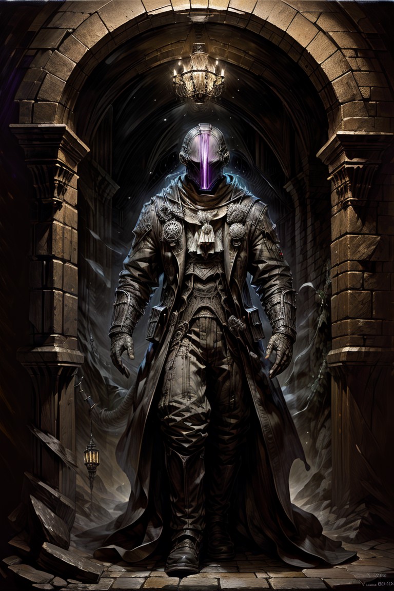 score_9, score_8_up, 8, score_7_up, solo, fantasy style, masterpiece, 8k, dynamic pose, 20 y.o, <lora:Fantasy_Classes_SD:1>, (Dungeons and Dragons) Thorough, analog style, eye focus, highest quality, (highly detailed skin), full body, photo of a exquisitely beautiful, BREAK artificer, bdsks, bfsks, Bondrewd is a tall man sporting mostly black clothing, with a long coat and a suit. He always covers his face with a black helmet which includes a gap in the middle where violet light shines through. His second body also has a lizard-like tail, which originates from the Artifact Third Works. His White Whistle is sculpted into the shape of two hands clasped together and is activated by rubbing instead of blowing into it, as it would be impractical to use while wearing his mask. sharp focus, dappled lighting, (backlighting:0.7), film grain, photographed on a Sony A7R IV, 18mm F/1.7 cine lens, (highly detailed, intricately detailed), 8k, HDR, seductively posing BREAK (EyesHD:1.2), (4k,8k,Ultra HD), masterpiece, best quality, ultra-detailed, very aesthetic, sharp focus, depth of field, ray tracing, best lighting, detailed illustration, detailed background, cinematic, BREAK detailed background, dynamic action image, BREAK oil painting, BadDream, negative_hand, NEG_EMBED_STABLE_YOGI_V3, FastNegativeV2, AissistV2 (detailed:1.3), (sharp focus:1.1), medieval style, (expressive face:1.2),,