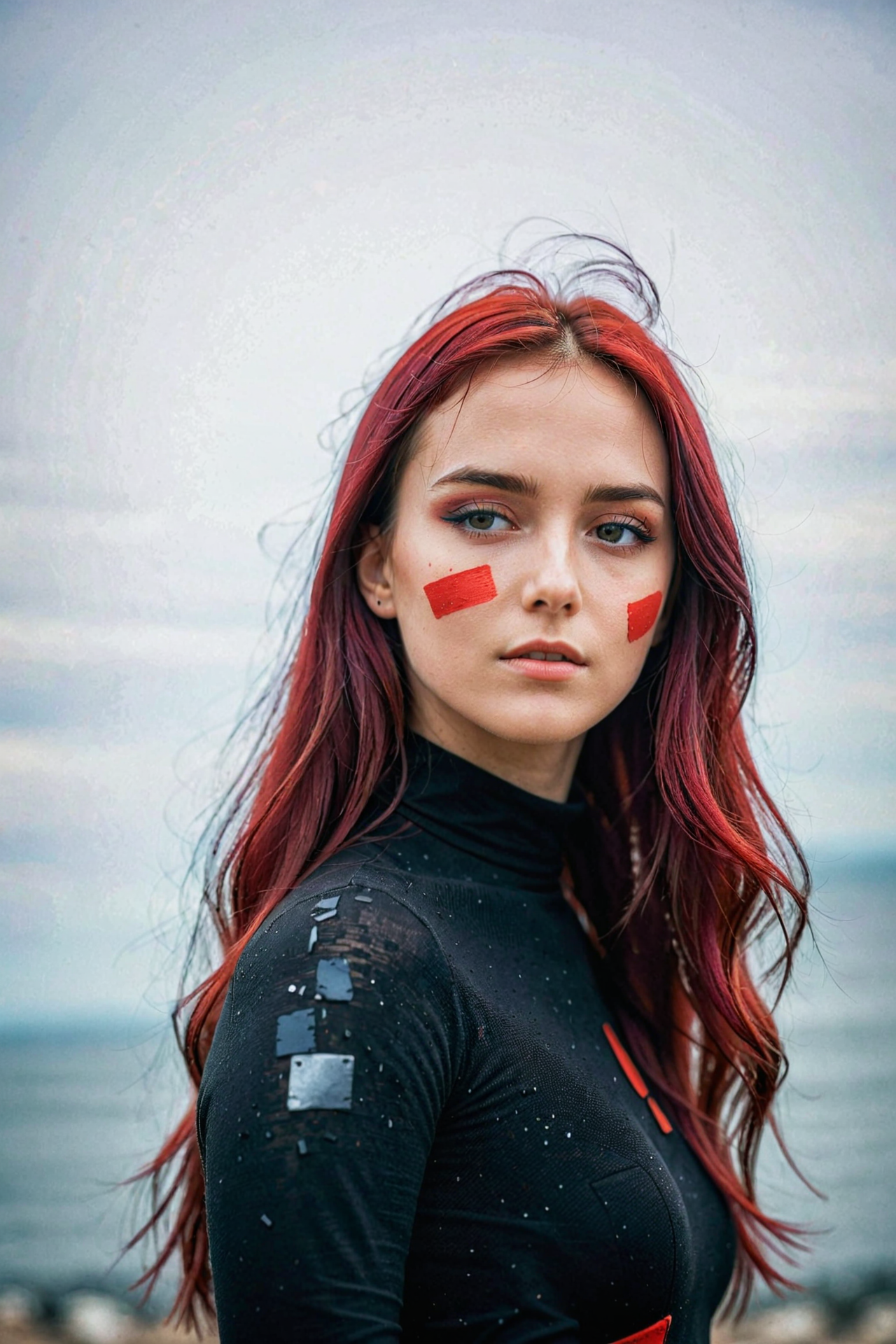 commercial photo on Sony 80mm f1.2, abstract portrait of 1girl, coloured hair, fragmented visual style,red and black color palette,evokes feelings of rebellion,passion,and freedom,blurred boundaries,high resolution,aesthetic, malevich style, suprematizm, unperfect skin, detailed skin with visible pores, bokeh, sharp focus on subject, film grain, masterpiece, HDR,Professional RAW photo <lora:Cinematic Hollywood Film:0.7> <lora:DetailedEyes_V3:1> <lora:InstantPhotoX3:1>