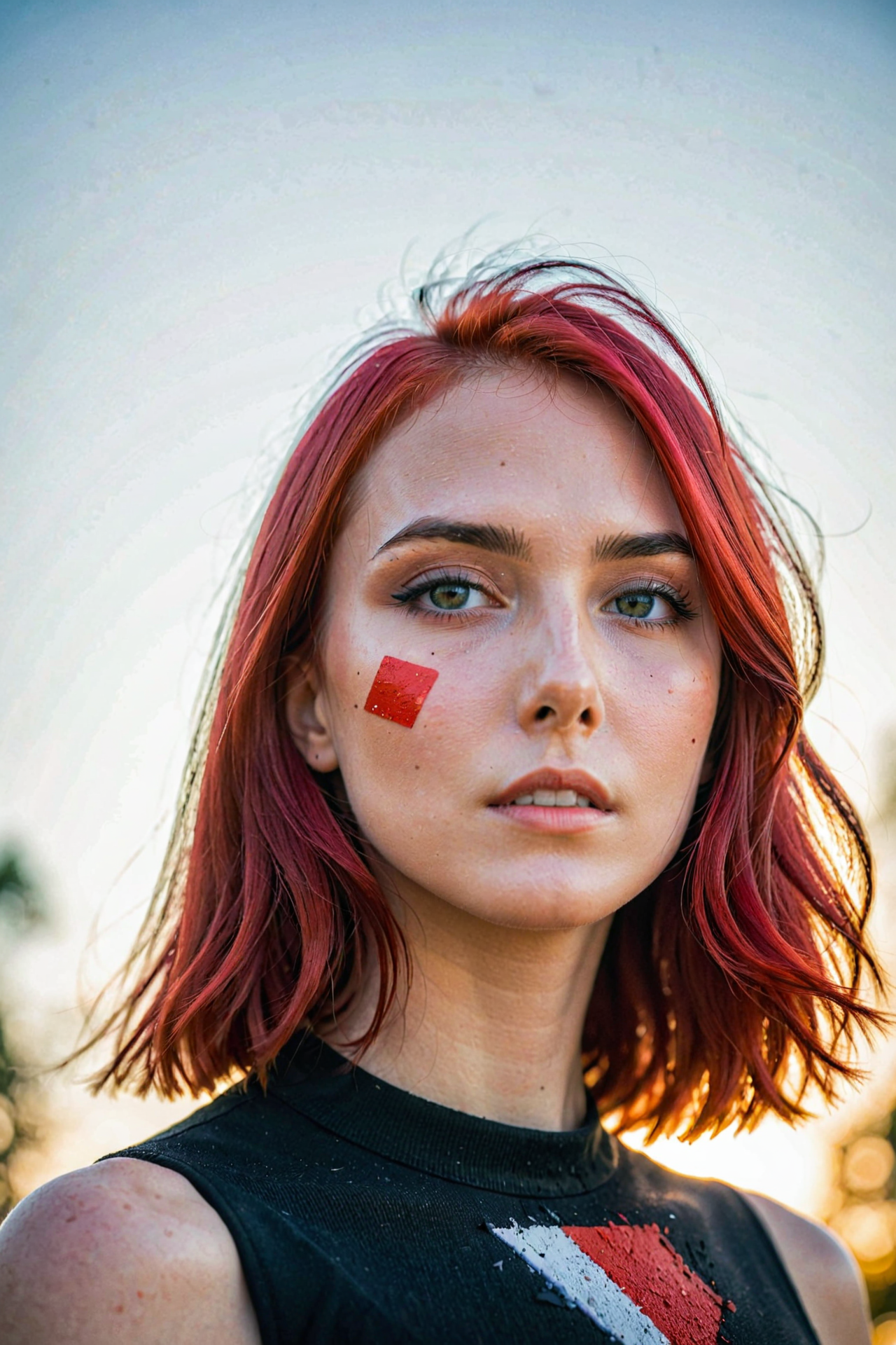 commercial photo on Sony 80mm f1.2, abstract portrait of 1girl, coloured hair, fragmented visual style,red and black color palette,evokes feelings of rebellion,passion,and freedom,blurred boundaries,high resolution,aesthetic, malevich style, suprematizm, unperfect skin, detailed skin with visible pores, bokeh, sharp focus on subject, film grain, masterpiece, HDR,Professional RAW photo <lora:Cinematic Hollywood Film:0.7> <lora:DetailedEyes_V3:1> <lora:InstantPhotoX3:1>