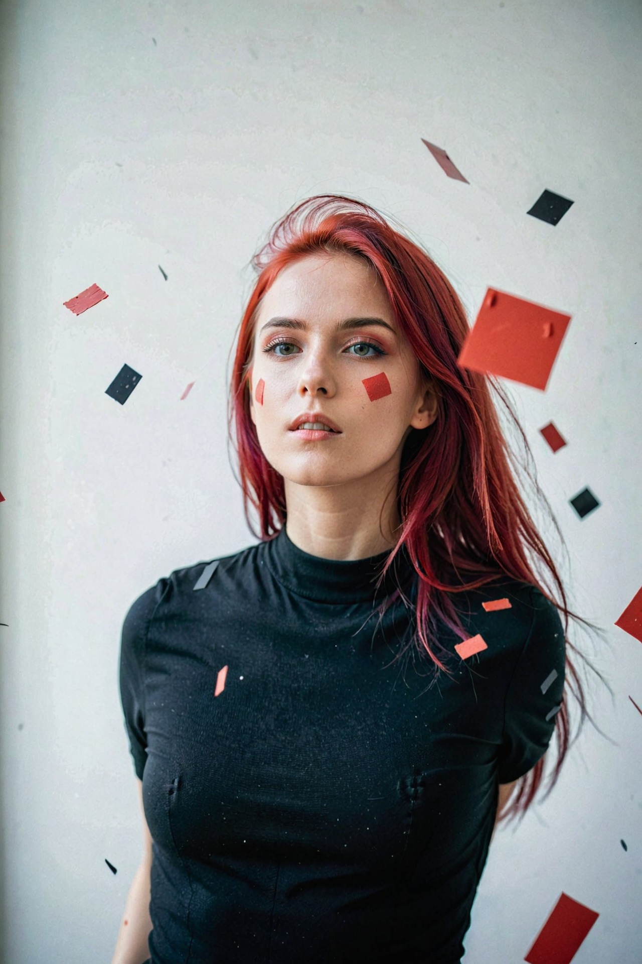 commercial photo on Sony 80mm f1.2, abstract portrait of 1girl, coloured hair, fragmented visual style,red and black color palette,evokes feelings of rebellion,passion,and freedom,blurred boundaries,high resolution,aesthetic, malevich style, suprematizm, unperfect skin, detailed skin with visible pores, bokeh, sharp focus on subject, film grain, masterpiece, HDR,Professional RAW photo <lora:Cinematic Hollywood Film:0.7> <lora:DetailedEyes_V3:1> <lora:InstantPhotoX3:1>