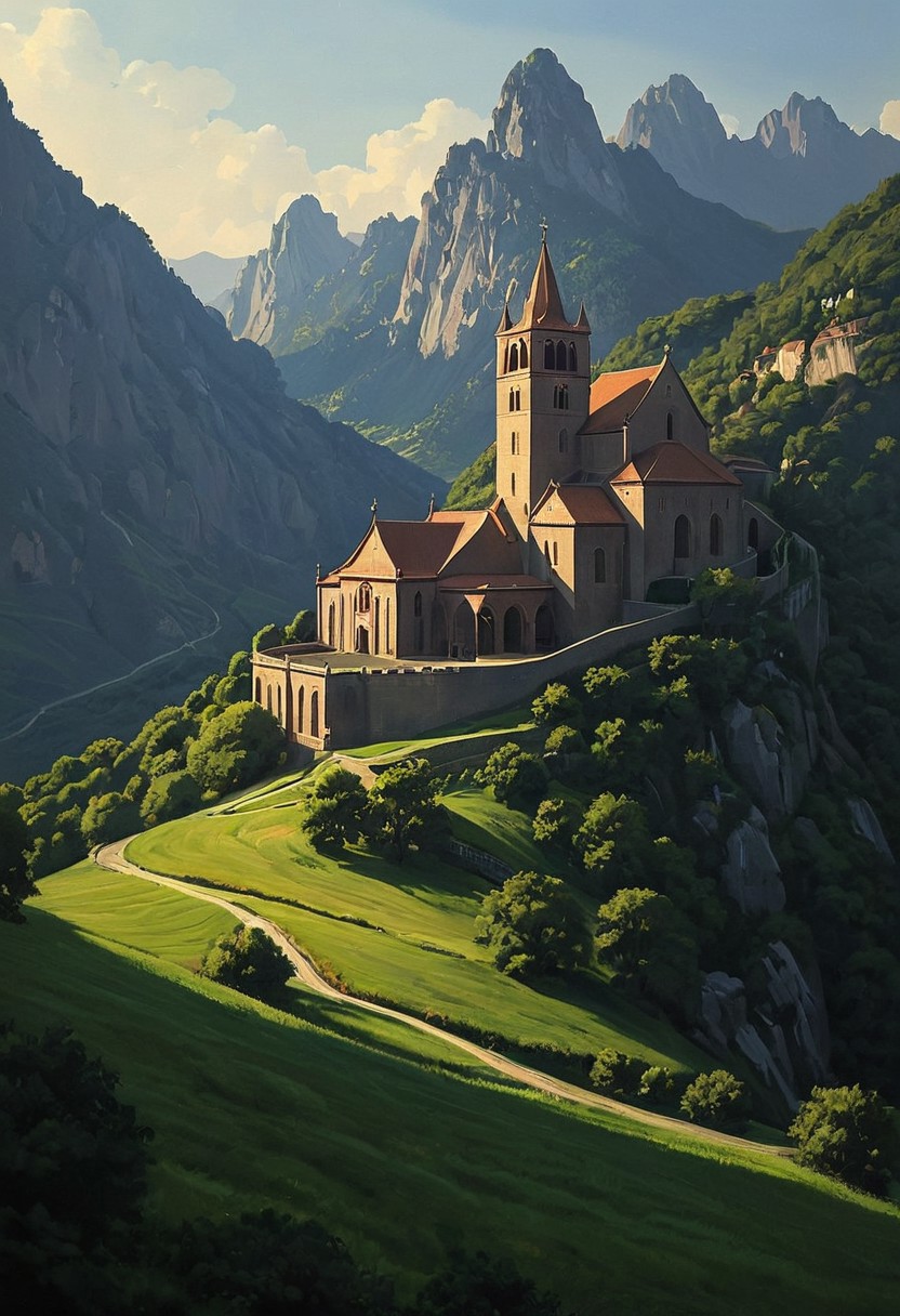 (landscape creator, landscape:1.5), , (epic landscape:1.5), (style Goro Fujita drawing), (style Goro Fujita painting),best quality, masterpiece, extremely detailed, professional art, professional painting, an extremely delicate and beautiful, dynamic, great lighting, perfect shading, professional shading, depth of field, side soft light, elegant, gorgeous, highly detailed, full shot, uncropped, pure genious, absolutely perfect, highly detailed, breathtaking,(no humans:1.5), steel-vine monastery with,