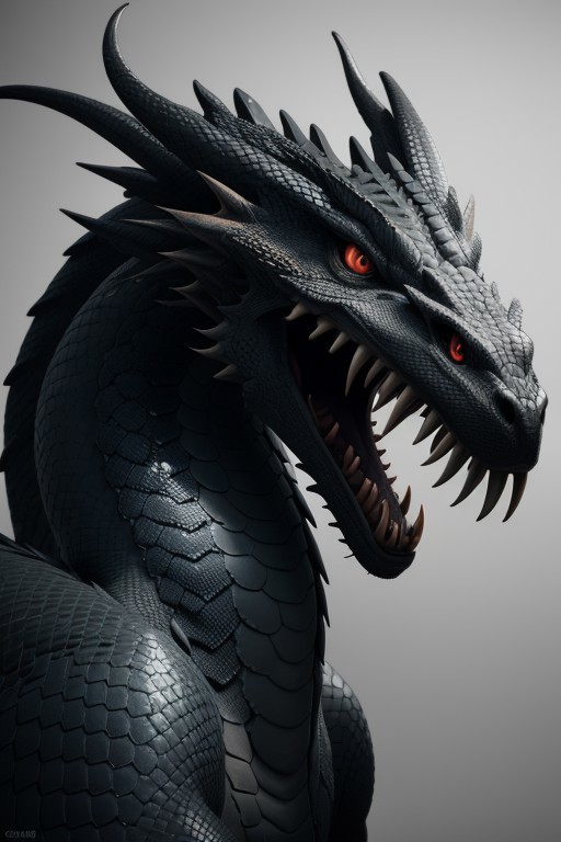 Asian dragon, Black snake gradient color, rough, textural, broad brush strokes, red color prominent detailed, alienzkin, silhouette, c4d, blender, raytracing, unreal engine 5, render 3d, face close up, Red Simple background,