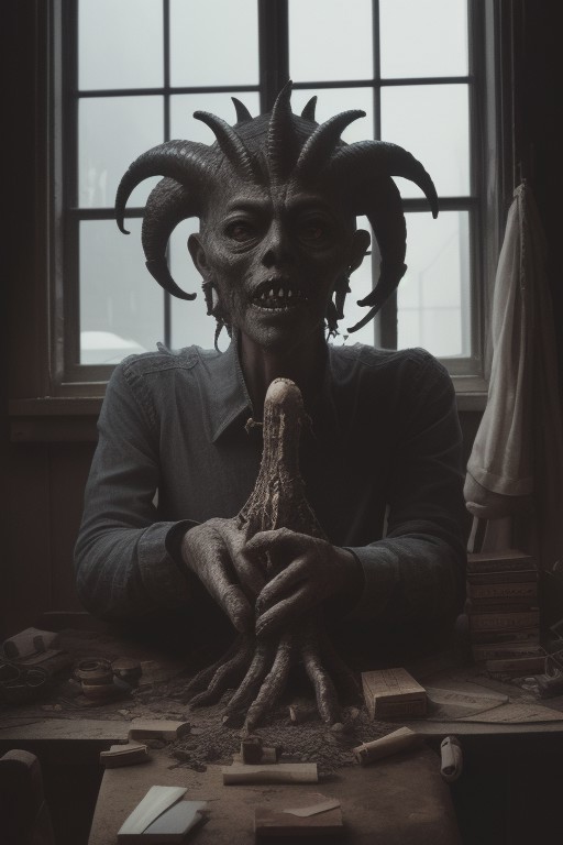 dark moody unsettling and surreal Kodachrome photograph, original character, hasselblad, indoors, giant horrifying demon hand reaching through doll house window, megalophobia, small world,