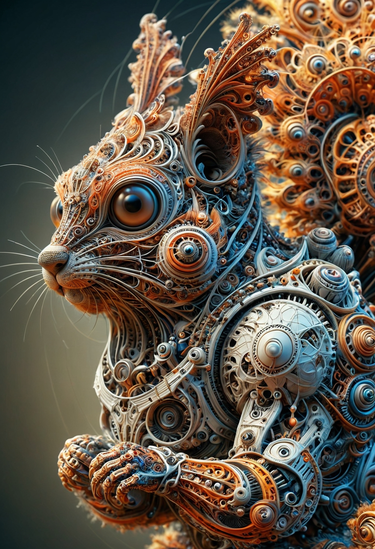 cinematic photo a vast, masterpiece, Ultra realistic photo a cyborg squirrel Sloot An embroidered design Spring atmosphere, sharp robot details, and eerie, swirling textures dominate the surreal composition, ultra sharp focus photo, cinematic, beautiful, vibrant, masterpiece, 32k, ultra HD, ultra-detailed, amazing quality, amazing artist, sharp edges, detailed textures, full view, atmospheric lighting, amazing visuals. cyborg squirrel robot, 32k, vibrant, masterpiece, 32k, ultra HD, ultra-detailed, amazing quality, amazing artist, sharp edges, detailed textures, full view, atmospheric lighting, amazing visuals. <lora:FluxDFaeTasticDetails:1>, <lora:aidmaMJ6.1_v0.5_3:1> aidmamj6.1, <lora:aidmaGPTimage:1> aidmagptimage, <lora:ral-frctlgmtry:1> ral-frctlgmtry,
