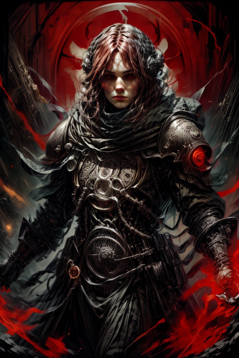 score_9, score_8_up, 8, score_7_up, solo, fantasy style, masterpiece, 8k, dynamic pose, 20 y.o, <lora:Fantasy_Classes_SD:1>, (Dungeons and Dragons) Thorough, analog style, eye focus, highest quality, (highly detailed skin), full body, photo of a exquisitely beautiful, BREAK score_9, score_8_up, score_7_up, white hair, dark makeup, goth girl, 1girl, looking at viewer, eye contact, faceing toward the viewer, full body shot, dynamic pose, holding weapon, dynamic pose, in movement, in combat <lora:Zeronis_Style:0.4> zeronis, adeptus mechanicus, red robe, tech priest, mechanical joints <lora:Concept Art DarkSide Style LoRA_Pony XL v6:0.4> concept art, realistic, dark theme, low light, red hood <lora:Adeptus_Mechanicus-000006:0.8>, <lora:rapi-nikke-richy-v1_pdxl:0.8> rapidef, red eyes, brown hair, long hair, bangs, sharp focus, dappled lighting, (backlighting:0.7), film grain, photographed on a Sony A7R IV, 18mm F/1.7 cine lens, (highly detailed, intricately detailed), 8k, HDR, seductively posing BREAK (EyesHD:1.2), (4k,8k,Ultra HD), masterpiece, best quality, ultra-detailed, very aesthetic, sharp focus, depth of field, ray tracing, best lighting, detailed illustration, detailed background, cinematic, BREAK detailed background, dynamic action image, BREAK oil painting, BadDream, negative_hand, NEG_EMBED_STABLE_YOGI_V3, FastNegativeV2, AissistV2 (detailed:1.3), (sharp focus:1.1), medieval style, (expressive face:1.2),,