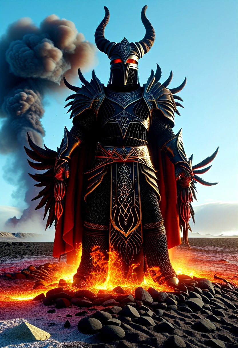 Upon blasted heath strewn with charred detritus, a sorcerer of immense prowess takes stance. Cloaked in garments woven from shadowstuff, embroidered with runes aflame, the mystic weaver of ruin marshals infernal energies to conjure annihilation incarnate. Palms pressed together before chest, eyes clenched shut in rapt concentration, the archmage unleashes pent-up pyrokinesis in explosive eruption. Blazing orb of super-heated plasma detonates outward, engulfing everything within radius of devastation. Searing tongues of flame dance frenetically, casting long, writhing shadows that writhe hypnotically amidst acrid haze choked with ash and embers. Smoke-shrouded silhouettes of toppled monoliths loom beyond periphery, relics of once-mighty bastions reduced to rubble by previous firestorms summoned by this maestro of mayhem. 3d-rendering, concept-art, digital, dreaminess, futuristic, multimedia, virtual-reality, eeriness, fantasy, other-worldliness, science-fiction, surreal, colorful, sci-fi style, technological, alien worlds, space themes, advanced civilizations, best quality, masterpiece, aesthetic, intricate details, highly detailed, ultra-detailed, absurdres, unreal engine, octane rendering, high contrast, vivid, vibrant, volumetric lighting, sharp focus, ObsidianSand