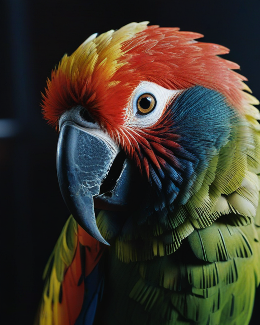 macro shot, cinematic photo of parrot, colorful, dark shot, film grain, extremely detailed