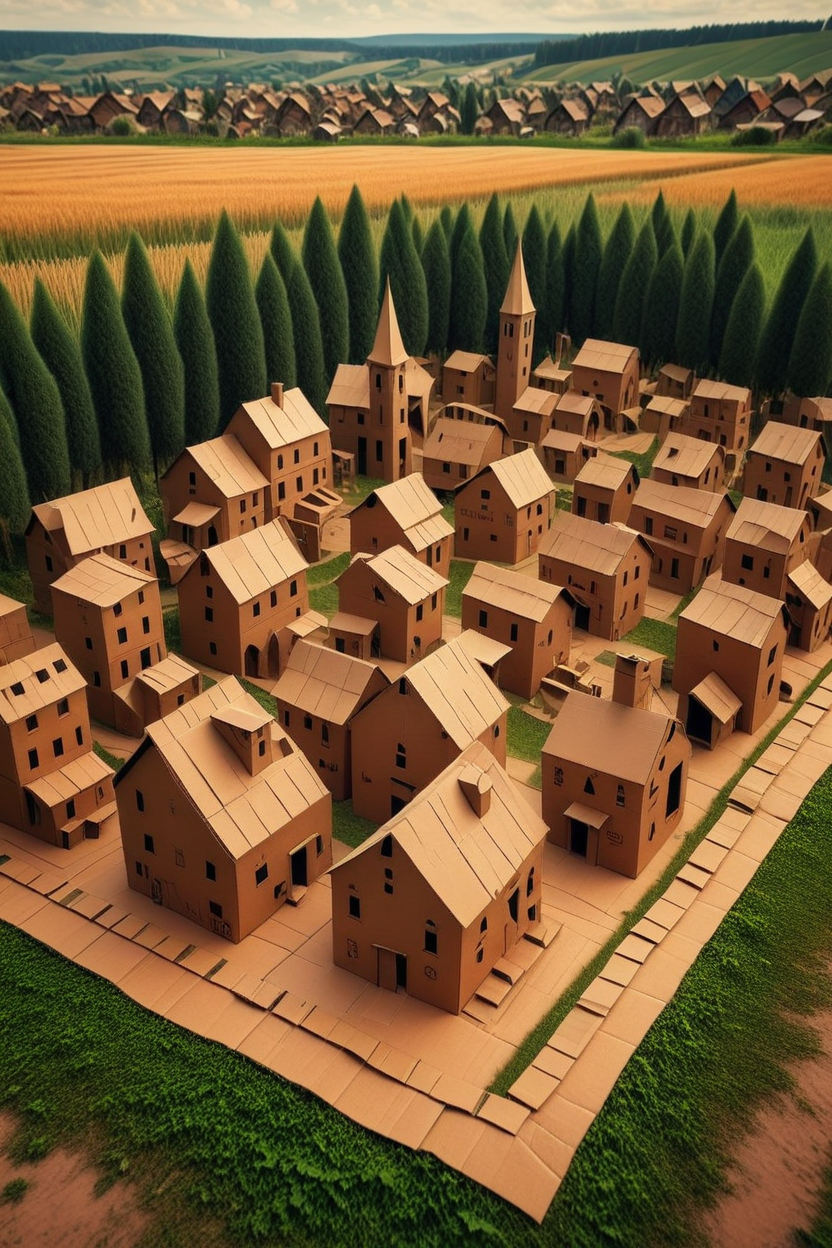 CardboardRay, small village made of cardboard, cinematic photography <lora:CardboardRay:1>