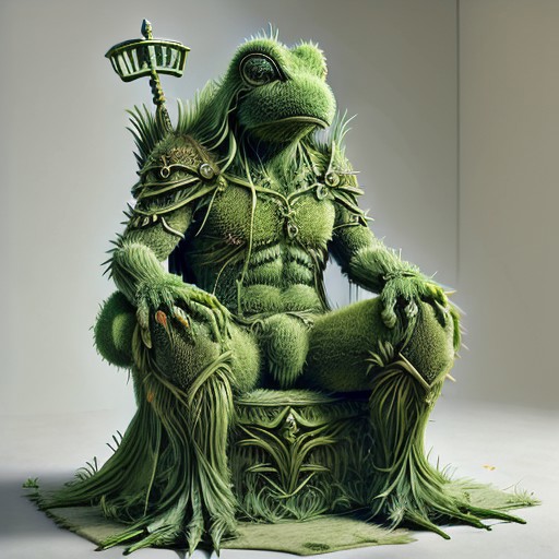 Blood for the Blood God blood orange world morph sdxl A comical frog prince sitting on a giant emerald throne, looking unimpressed made in blood orange style