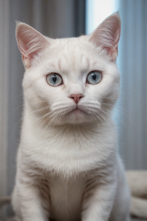 closeup award winning photo of a white british shorthair cat, perfect environment, extremely detailed, dark shot,