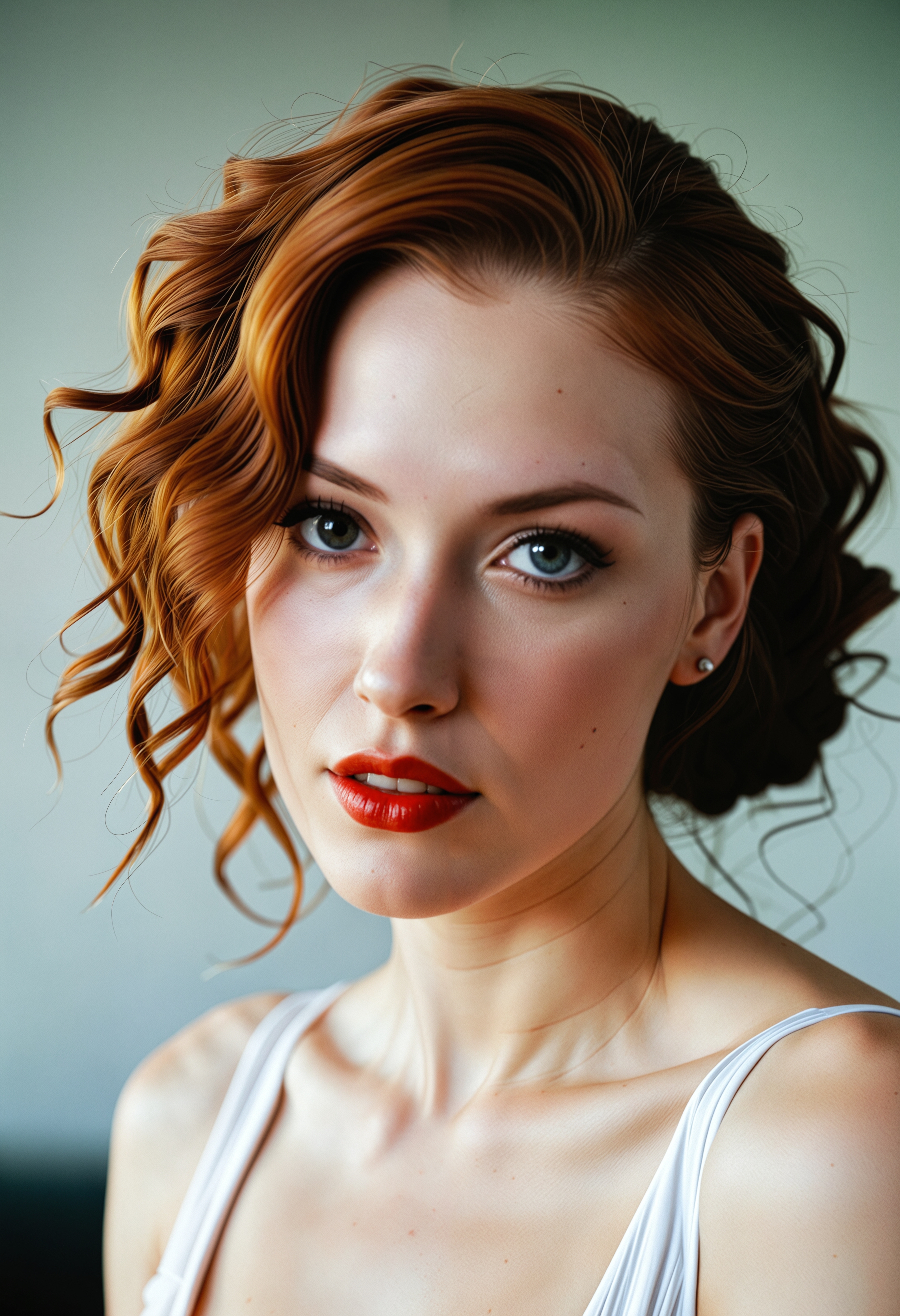 (Close up analogue photo) of a beautiful 25 years ((pale skin)), oval face, auburn haired woman, <lora:Jacinta_SDXL:0.7>,perfect face, sexy pose, wearing structured, off the shoulder dress with a layered skirt made of taffeta, demonstrating confidence, perfect eyes, detailed eyes, detailed iris, realistic skin, absolute perfect tits, soft tits, natural tits, (Twists and Curls hairstyle:1.6),,high quality, film grain, Fujifilm XT3, 8k uhd, dslr, film grain, kodak tri-x 400 film, grain photo DOF, faint lighting, dynamic angle, cinematic, Depth of field, bokeh, best quality, cinematic, light particles, highly_detailed, very_aesthetic, golden hour, beautiful_and_aesthetic ,Sexy pose, erotic pose, exhibitionism ,space station