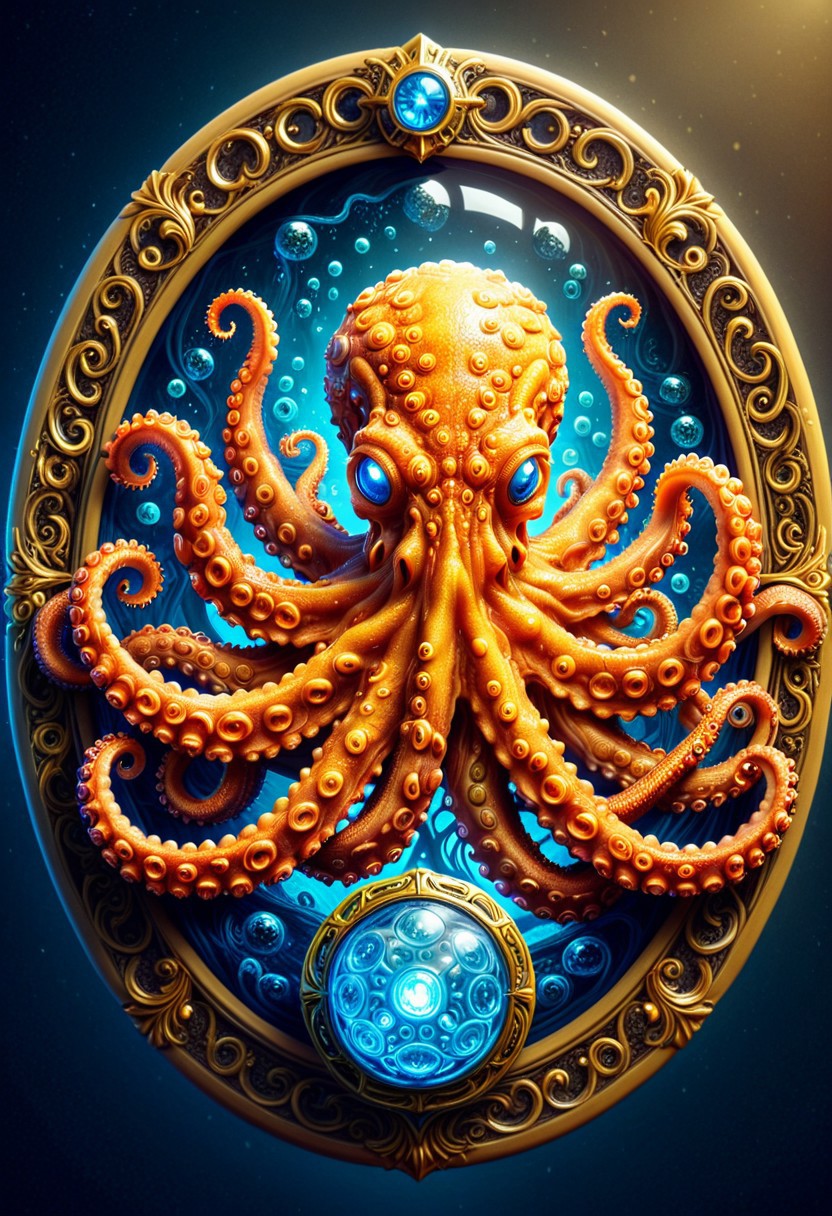 score_9,score_8_up,score_7_up,score_6_up, masterpiece,cs-l3ath3r, octopus, shnywrld,digital art, Ambient lighting, D&D, illustration, ornate, fantastic aesthetic, professional fine composition, badge, inspired, creative