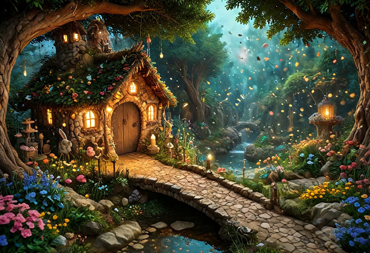 score_9, score_8_up, score_7_up, score_6_up, Masterpiece, source_anime screenshot, 1 girl, vivid colors, full color, shiny and glossy, anime style, high-res, beautiful aesthetic, very intricate, high-quality details, vibrant, highly detailed, award-winning, professional,(Isekai anime style.Anime coloring.(0.9))In a whimsical world, a beautiful fairy garden blooms with vibrant flowers and sparkling fountains. A delicate, crystal bridge spans a gentle stream, leading to a majestic tree with leaves that shimmer like diamonds. A friendly, fluffy rabbit hops along the winding path, surrounded by fluttering butterflies and sweet, singing birds. The garden is filled with hidden treasures, like a tiny, glowing fairy door and a secret, shimmering cave. A soft, fluffy cloud drifts lazily across the sky, casting a warm, gentle shadow over the garden. The air is filled with the sweet scent of blooming flowers and the soft, soothing sound of gentle chimes. It's a peaceful, magical place where dreams come alive and wonder waits around every corner.master_class,master_piece,up_8,up_9,perfect beautiful,perfect beautiful early morning light.