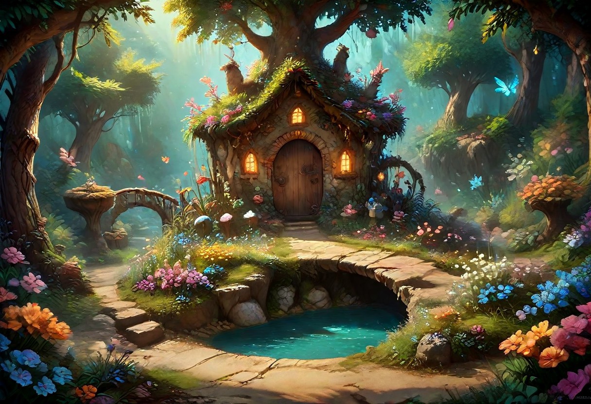 score_9, score_8_up, score_7_up, score_6_up, Masterpiece, source_anime screenshot, 1 girl, vivid colors, full color, shiny and glossy, anime style, high-res, beautiful aesthetic, very intricate, high-quality details, vibrant, highly detailed, award-winning, professional,(Isekai anime style.Anime coloring.(0.9))In a whimsical world, a beautiful fairy garden blooms with vibrant flowers and sparkling fountains. A delicate, crystal bridge spans a gentle stream, leading to a majestic tree with leaves that shimmer like diamonds. A friendly, fluffy rabbit hops along the winding path, surrounded by fluttering butterflies and sweet, singing birds. The garden is filled with hidden treasures, like a tiny, glowing fairy door and a secret, shimmering cave. A soft, fluffy cloud drifts lazily across the sky, casting a warm, gentle shadow over the garden. The air is filled with the sweet scent of blooming flowers and the soft, soothing sound of gentle chimes. It's a peaceful, magical place where dreams come alive and wonder waits around every corner.master_class,master_piece,up_8,up_9,perfect beautiful,perfect beautiful early morning light.