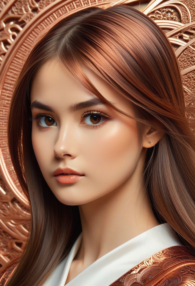 CopperCopper theme, intricate details, ultra sharp, exquisite detail, flawless composition, vivid colors, masterpiece, Super model, portrait, stoic, expressionless, beautiful, photorealistic, UHD, 8K, masterpiece, detailed, ultra_high_resolution, lots of detail, YurYuna, brown hair, modest, sfw, gorgeous, looks beautiful and aesthetic, colorful background, key visual, luxurious, artistic, high resolution, digital art, visual aesthetics, contemporary design, vibrant colors, artistic composition, elegant, intricate detailing, modern,