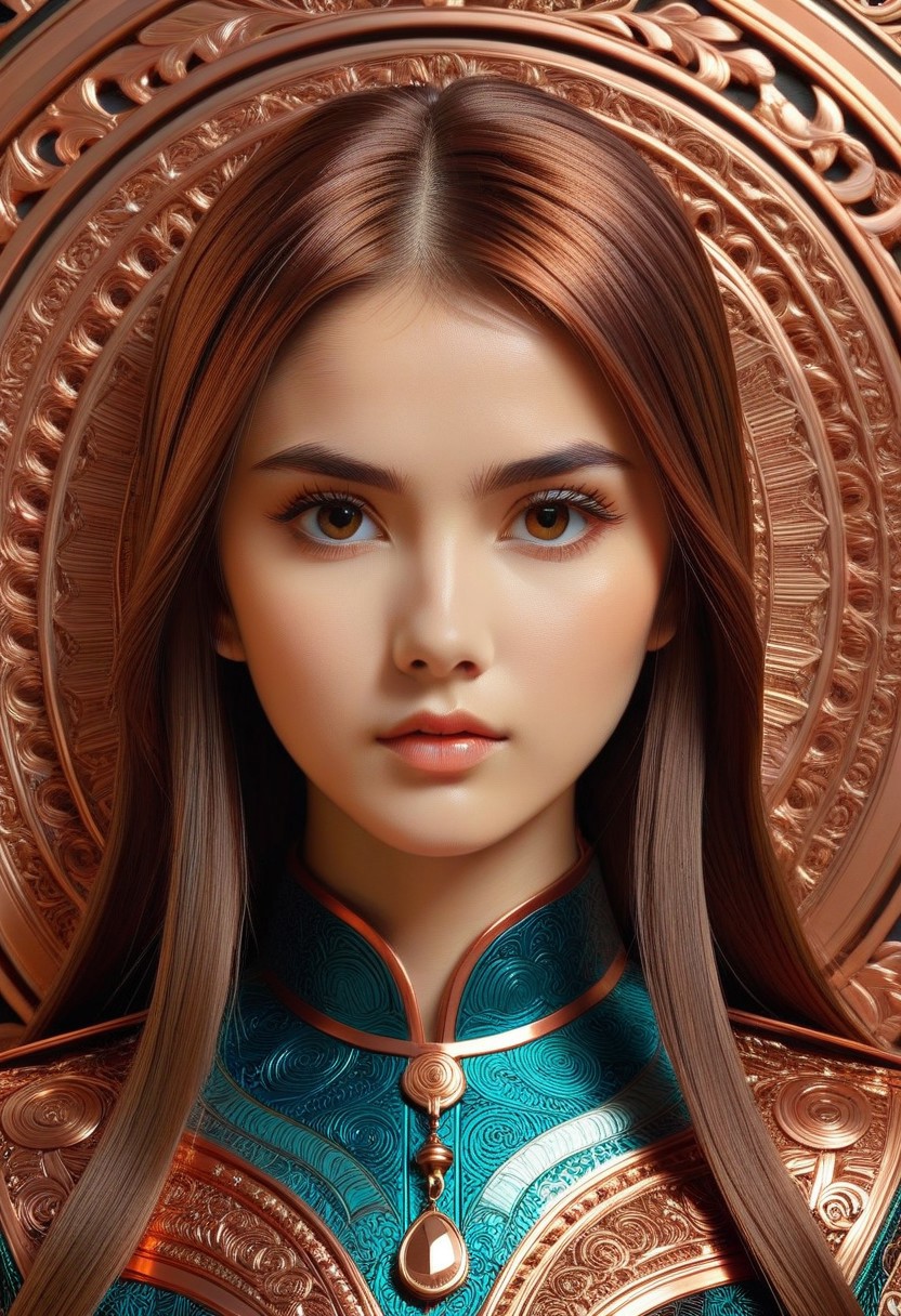 CopperCopper theme, intricate details, ultra sharp, exquisite detail, flawless composition, vivid colors, masterpiece, Super model, portrait, stoic, expressionless, beautiful, photorealistic, UHD, 8K, masterpiece, detailed, ultra_high_resolution, lots of detail, YurYuna, brown hair, modest, sfw, gorgeous, looks beautiful and aesthetic, colorful background, key visual, luxurious, artistic, high resolution, digital art, visual aesthetics, contemporary design, vibrant colors, artistic composition, elegant, intricate detailing, modern,