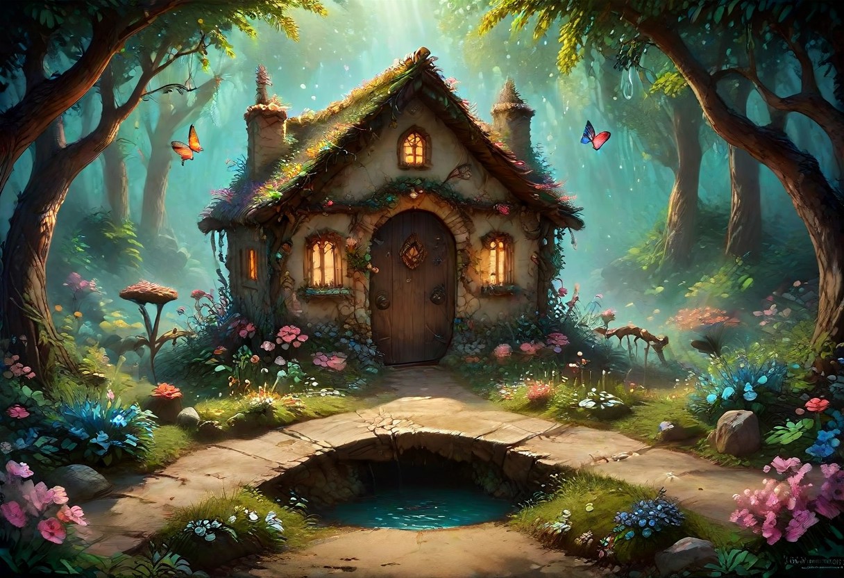 score_9, score_8_up, score_7_up, score_6_up, Masterpiece, source_anime screenshot, 1 girl, vivid colors, full color, shiny and glossy, anime style, high-res, beautiful aesthetic, very intricate, high-quality details, vibrant, highly detailed, award-winning, professional,(Isekai anime style.Anime coloring.(0.9))In a whimsical world, a beautiful fairy garden blooms with vibrant flowers and sparkling fountains. A delicate, crystal bridge spans a gentle stream, leading to a majestic tree with leaves that shimmer like diamonds. A friendly, fluffy rabbit hops along the winding path, surrounded by fluttering butterflies and sweet, singing birds. The garden is filled with hidden treasures, like a tiny, glowing fairy door and a secret, shimmering cave. A soft, fluffy cloud drifts lazily across the sky, casting a warm, gentle shadow over the garden. The air is filled with the sweet scent of blooming flowers and the soft, soothing sound of gentle chimes. It's a peaceful, magical place where dreams come alive and wonder waits around every corner.master_class,master_piece,up_8,up_9,perfect beautiful,perfect beautiful early morning light.
